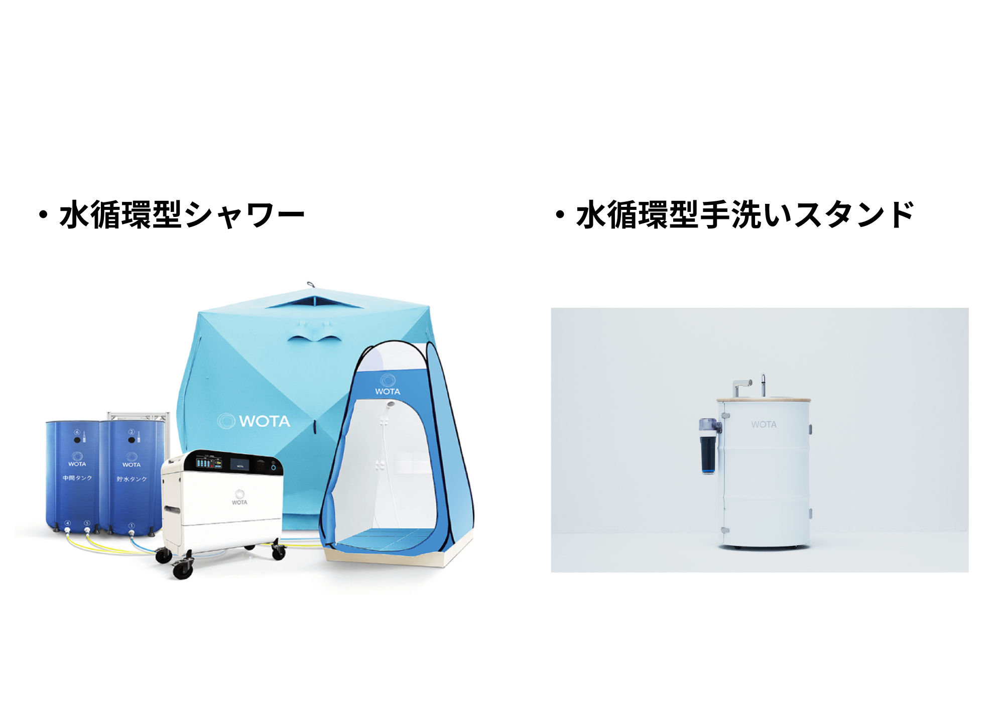 災害発生時の備えとして、「水循環型シャワー」と「水循環型手洗いスタンド」を