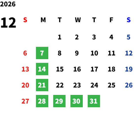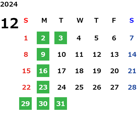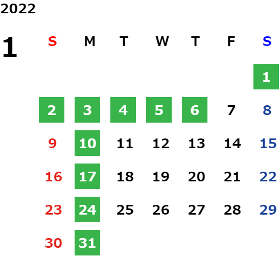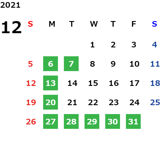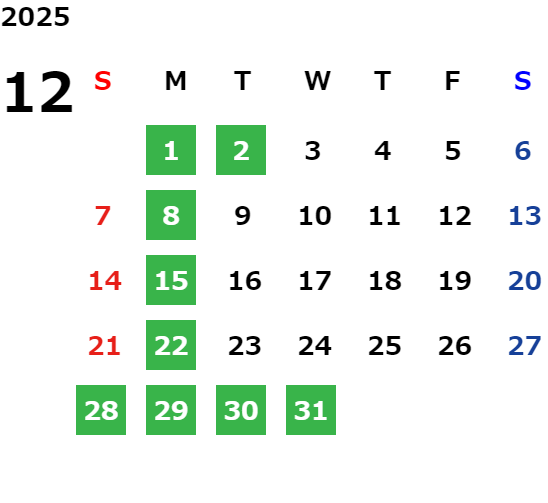 2021年12月27日(月)~2022年1月6日(木)まで、誠に勝手ながら年末年始休業といたします。(イオンレイクタウン店を除く)